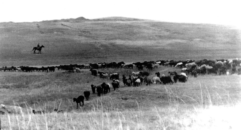 Schafherde einer Kolchose. Die Schafzucht erwies sich unwirtschaftlich, denn für die Weide war sehr wenig ungepflügtes Land geblieben, das nicht mal für das Rindvieh ausreichte.