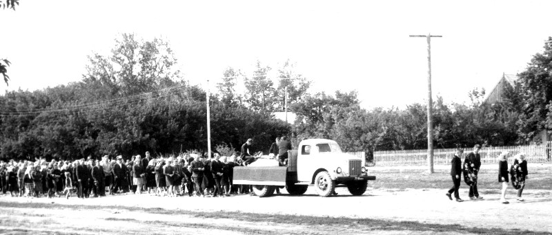 Leichenzug von Maria Fast auf dem Wege zum Friedhof im August 1973.
